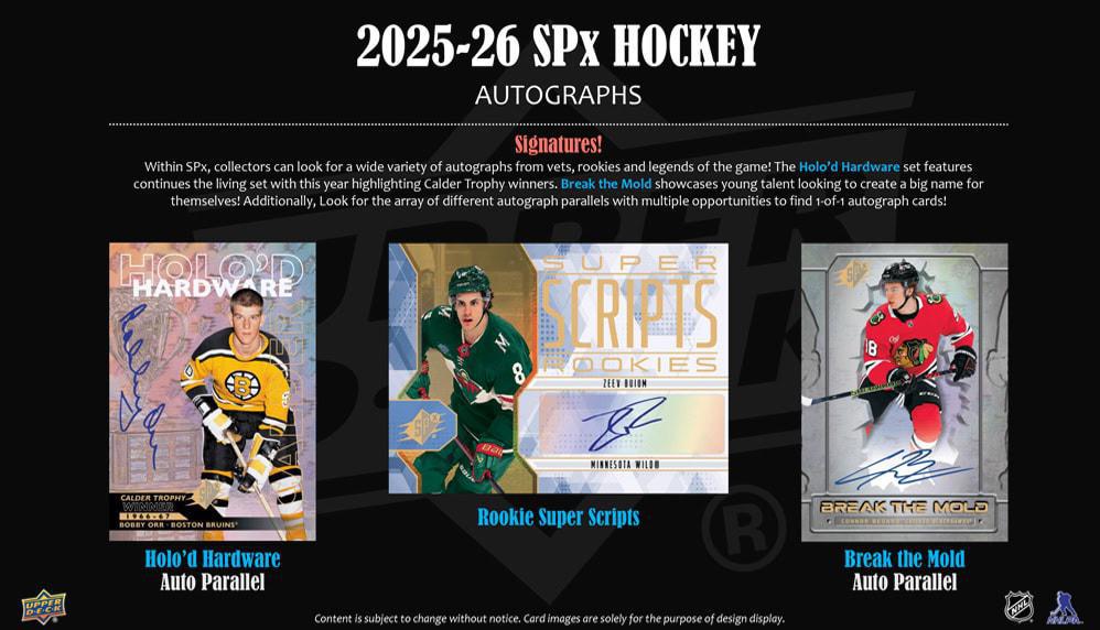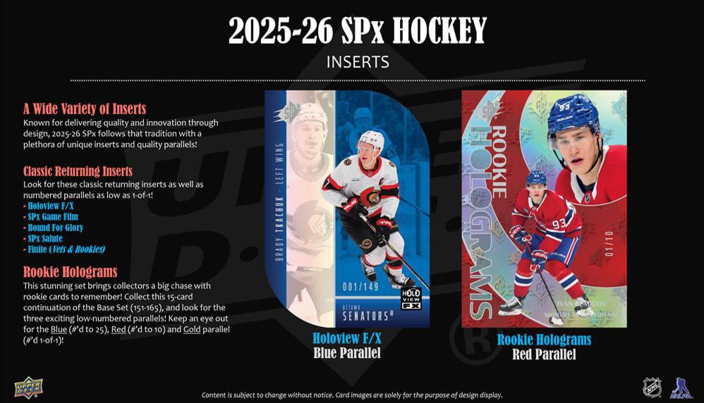 2025-26 SPx returns for another exciting season! Following the reconfiguration to a multi-pack product last season, this year builds on the momentum continuing to deliver an SPx product that invokes nostalgia for long-time collectors!