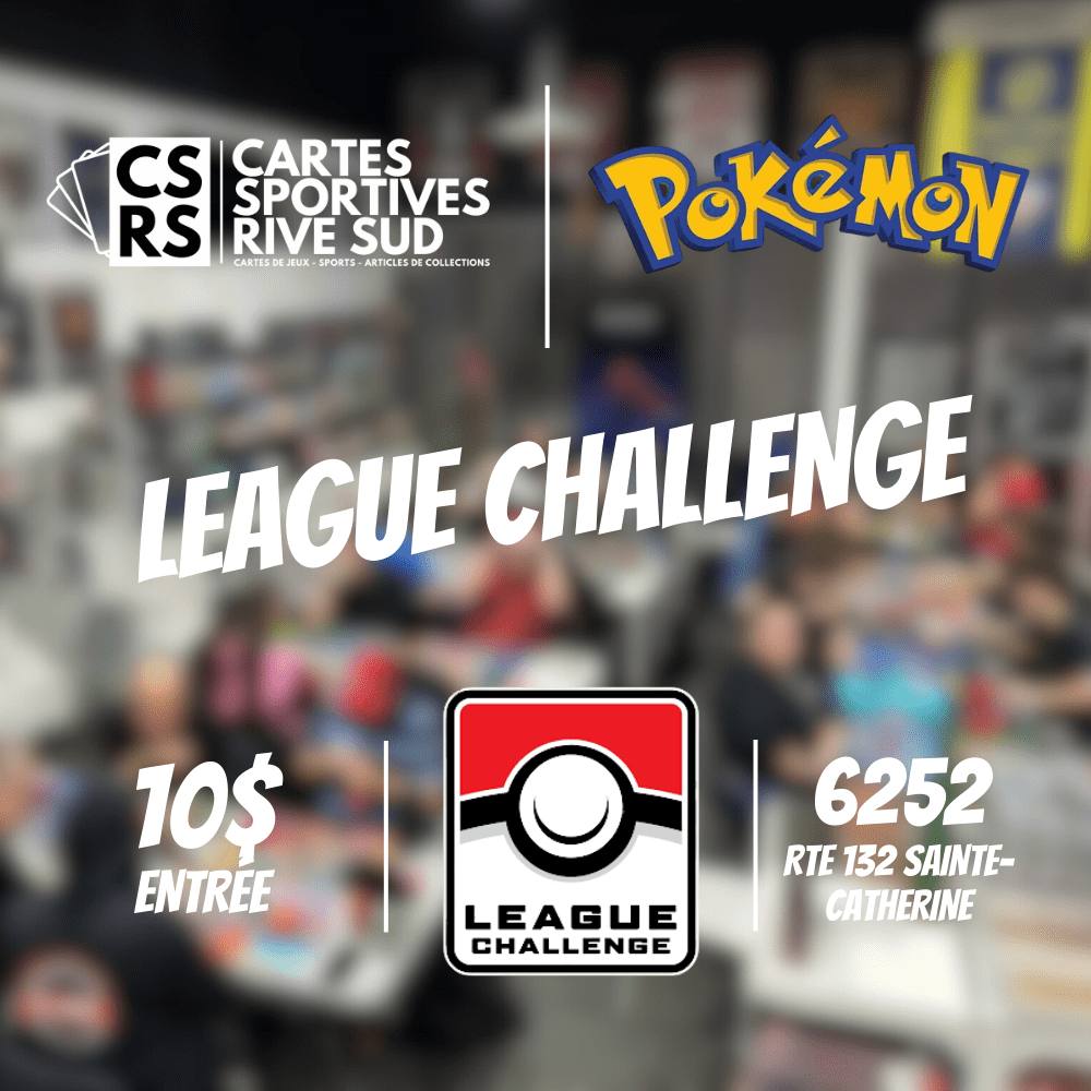 Cartes Sportives Rive Sud Événement : Pokemon League Challenge Lieu : 6252 Rte 132, Sainte-Catherine, J5C1B6, 450-632-0222 Prix : 10$ Taxes inc. Heures : 11h Lien pour l'insciption : google.com/maps?q=45.3964602,-73.58809289999999