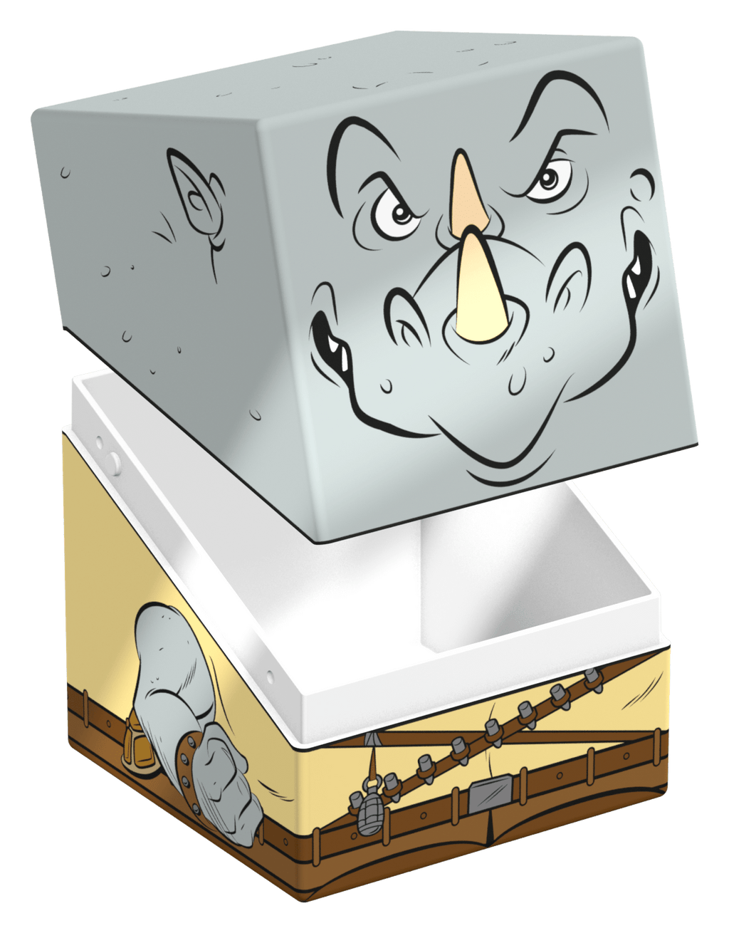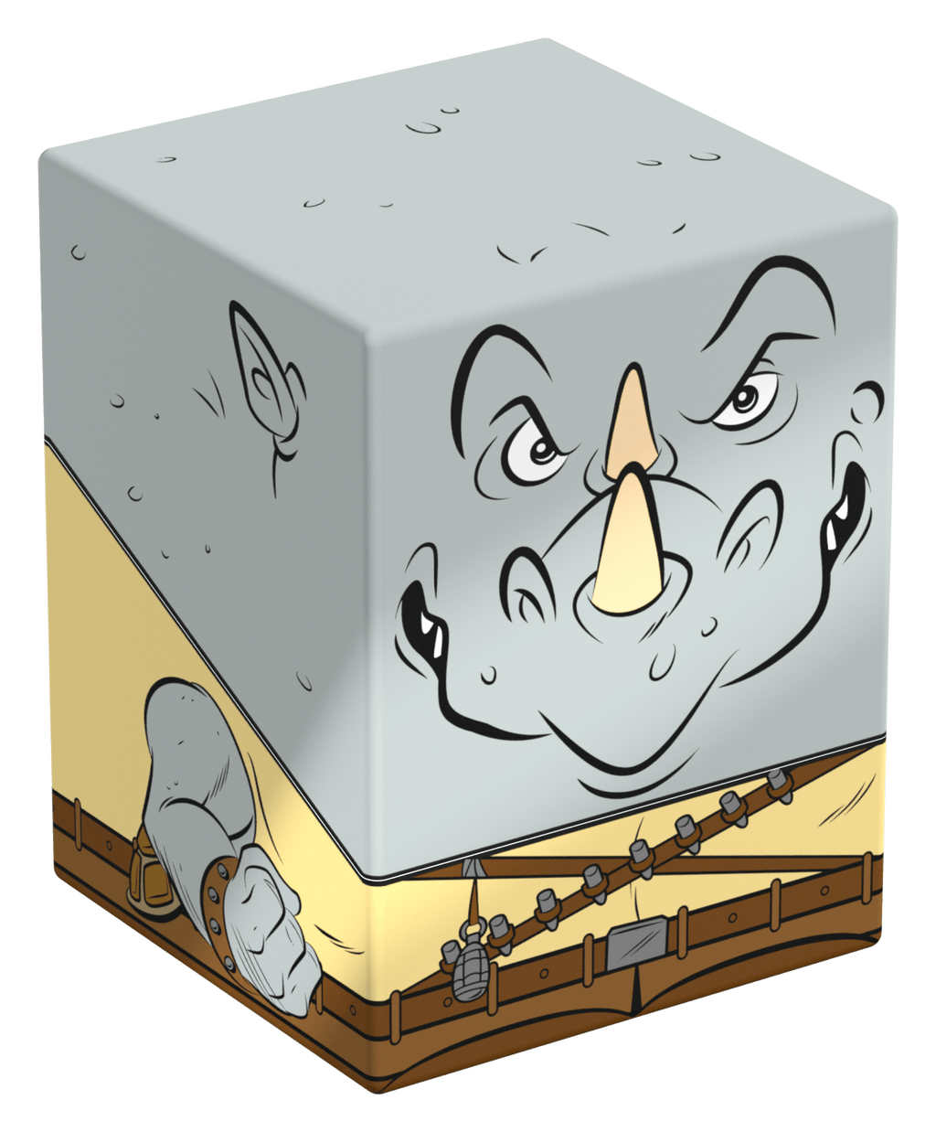 Collectible box for storing TCG decks, tabletop gaming accessories, and/or collectibles. The Rocksteady Squaroe from the Teenage Mutant Ninja Turtles™ edition holds up to 100 cards in double protective sleeves if used as a deck box. Squaroes are made from 78% renewable recources and fit perfectly into the separately available Collectors Case.