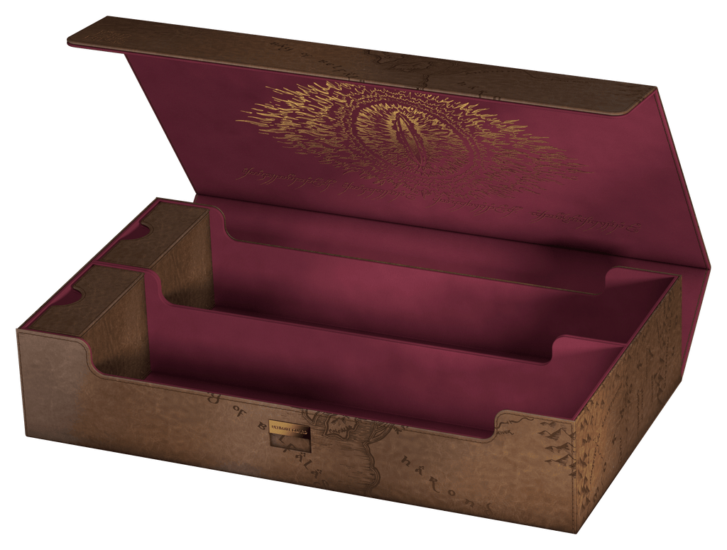 The Omnihive 1000+ is designed to hold multiple deck boxes, dice and/or play-mats at once with the help of two flexibly positioned magnetic trays. The deck case from Ultimate Guard's official The Lord of the Rings™ edition "Places of Middle-earth" is made of high-quality faux leather and is also the perfect choice for storing a larger collection of individual trading cards (up to 1000 double-sleeved). The Omnihive 1000+ Xenoskin's inside is made of elegant microfiber inner lining, while a strong magnetic closure with additional ZnapClaw mechanism ensures that cards and deck boxes are safe inside the box.