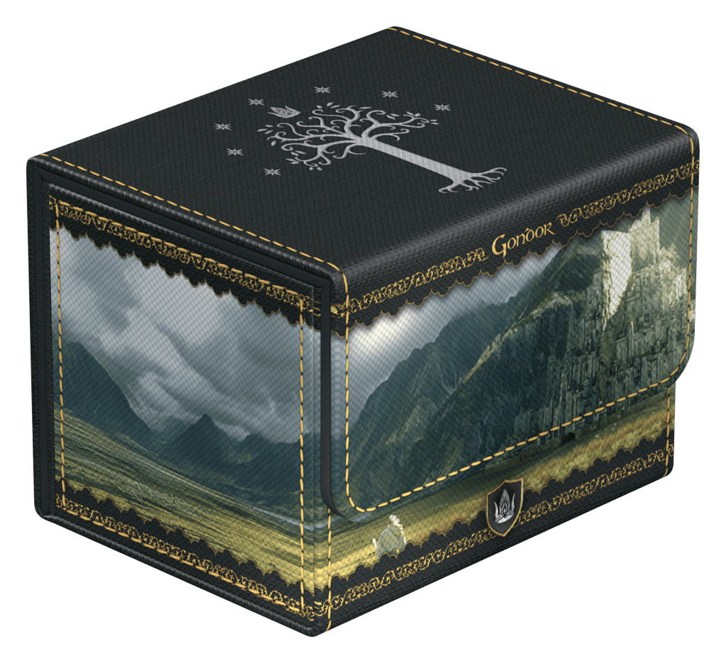 The Sidewinder 100+ Xenoskin is a high-quality TCG deck box that offers premium card protection thanks to its resistant Xenoskin material, microfiber inner lining, and strong magnetic closure, all while still granting easy and convenient access to the cards inside. The deck boxes from Ultimate Guard's official The Lord of the Rings™ edition "Places of Middle-earth" are printed in full color and are optimized to hold 100 double-sleeved cards in Ultimate Guard sleeves.