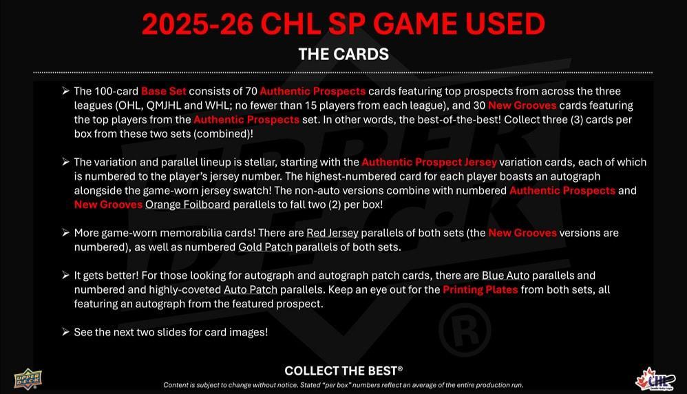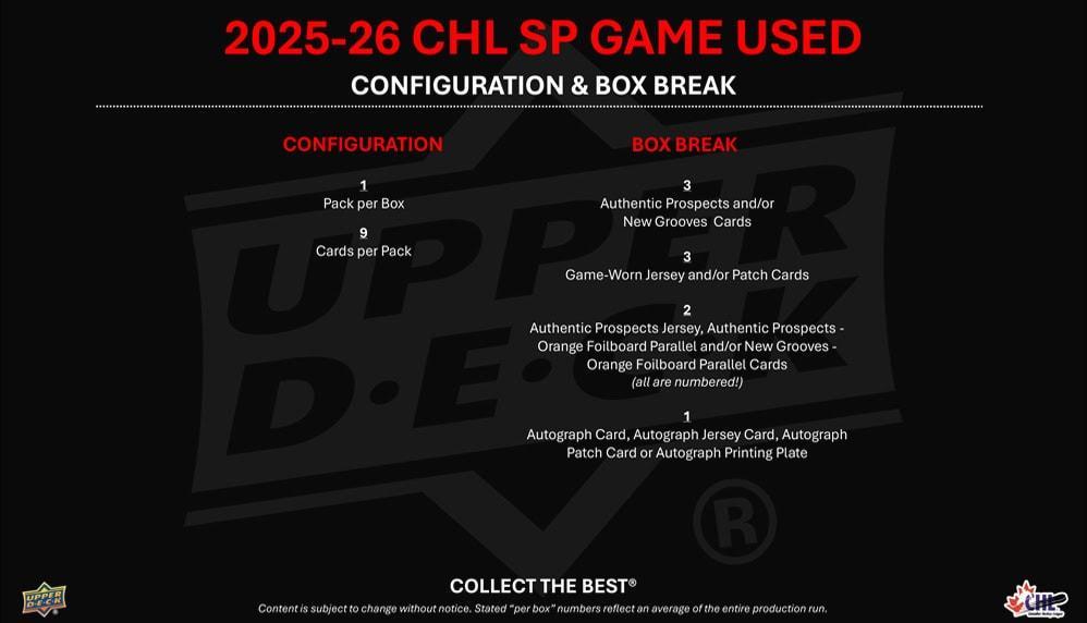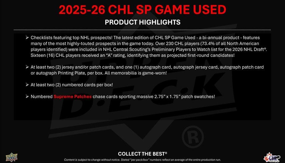 2025-26 Upper Deck SP Game Used CHL Hockey Hobby Box (Pre Order)