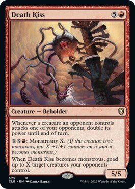 When Death Kiss becomes monstrous, goad up to X target creatures your opponents control.