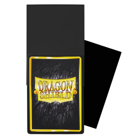 They are top-loading and fit smoothly inside regular Dragon Shield sleeves – perfect for double-sleeving. The Clear front combined with a Black back makes this the perfect companion for any lighter colored regular sleeve, increasing opacity dramatically.