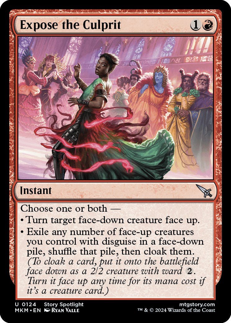 • Exile any number of face-up creatures you control with disguise in a face-down pile, shuffle that pile, then cloak them. (To cloak a card, put it onto the battlefield face down as a 2/2 creature with ward 2. Turn it face up any time for its mana cost if it's a creature card.