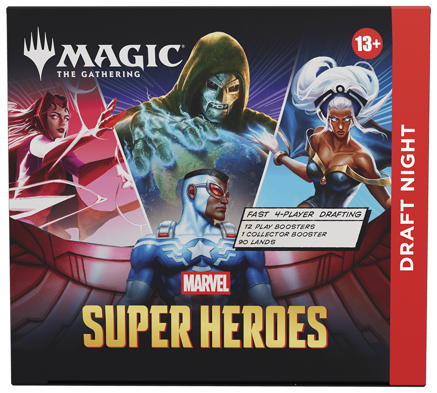 It's a draft party in a box! Draft Night is the self-contained kit for hosting a Pick-Two Draft for four players. Pick-Two encourages fast, dynamic drafting that's great for kitchen-table play or adding a dash of variety to game night! Crown the winner with the packed-in Magic: The Gathering | Marvel Super Heroes Collector Booster (or you can keep it for yourself—we won't judge).
