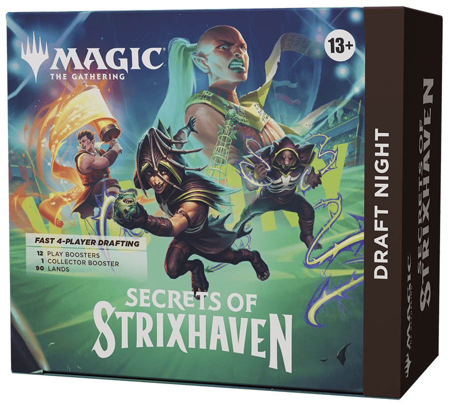 It's a draft party in a box! Draft Night has everything you need to host a Pick-Two Draft with just four players. Pick-Two encourages fast, dynamic drafting that's great for kitchen-table play or adding a dash of variety to game night. Bring Secrets of Strixhaven to the table for an unforgettable game night!