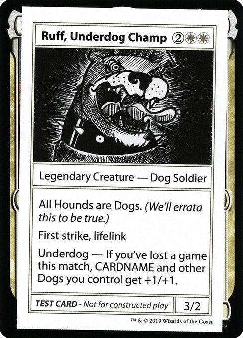 Underdog — If you’ve lost a game this match, CARDNAME and other Dogs you control get +1/+1.